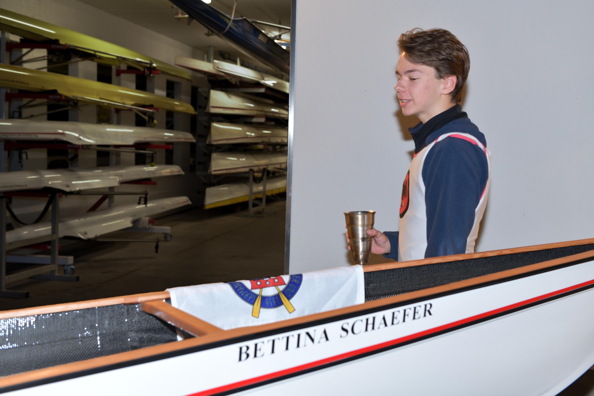 Ein neuer Gig-Doppelvierer ziert unseren Bootspark: Der Neuzugang, wieder ein Boot der bei uns so beliebten Linzer Werft Schellenbacher, ist mit offenen Rollbahndecks besonders leicht gebaut und hat deshalb das Zeug zu einem echten Regatta-Lieblingsboot. Bei der diesjährigen Jahreshauptversammlung am 20. November 2025 ergab sich die Gelegenheit, die „Bettina Schaefer“ vor versammelter Club-Familie auf den Namen der Spenderin zu taufen.